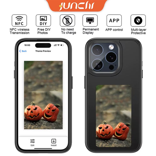 New-Tech NFC Function Phone Case for Iphone 15 14 13 Pro Max DIY Cases E Ink Screen Phone Cover Wear-Resisting Smart Iphone Case